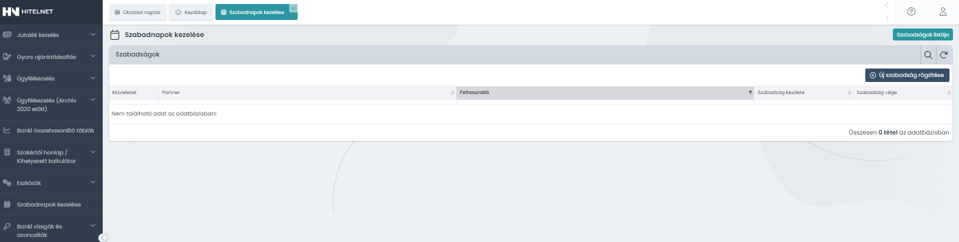 A szabadságot az admin rendszerben a baldali szürke menüsávban a Szabadnapok kezelése opciót választva tudod beállítani.