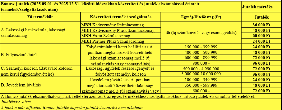 Örömmel tájékoztatunk benneteket, hogy 2025.09.01-től az MBH Bank meghatározott termékkör közvetítése után járó extra bónusz programot hirdet számotokra!