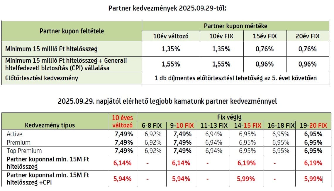 Az egyedi kedvezmény és a partner kupon kedvezmény összevonható, így a meglévő kupon kedvezményen felül egyedi kedvezmény is kérhető, amennyiben a hitel paraméterei megfelelnek a meghatározott feltételeknek.